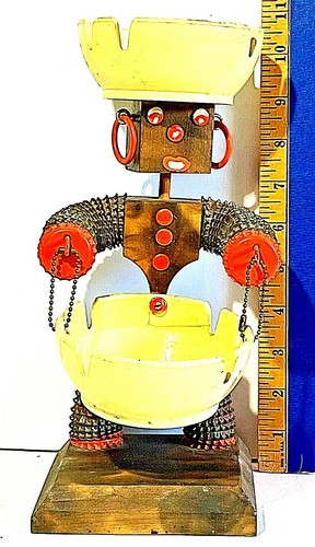 Vintage Folk Tramp Art Americana Bottle Cap Figure With Two Bowls Ebay