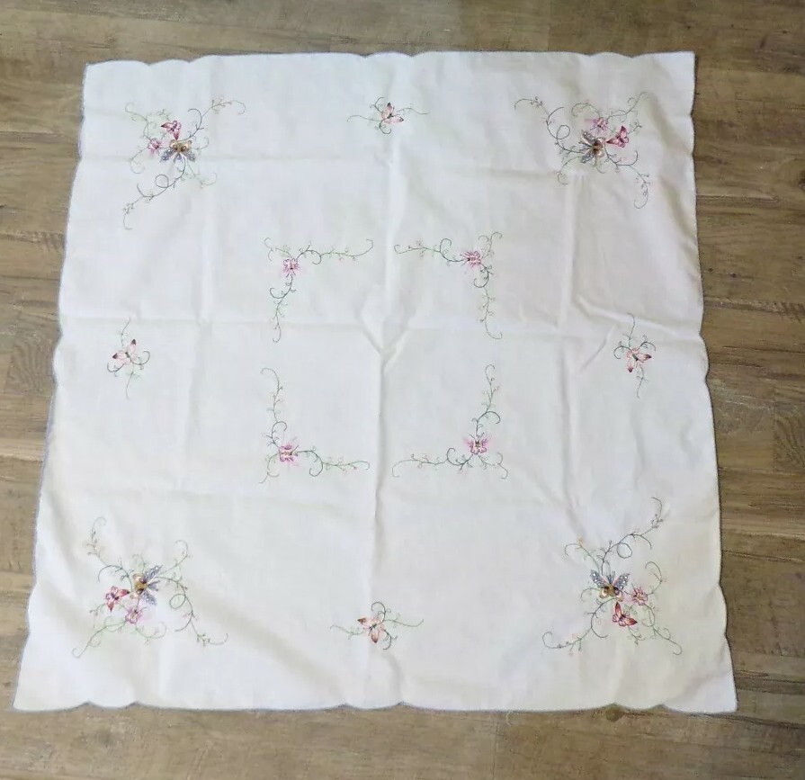 Butterfly Shawl Scarf Embroidered Hankerchief Antique Table Scarf 32 X 32 Vtg Ebay